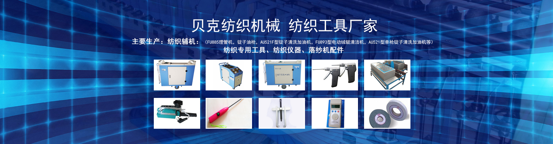 安徽貝克紡織機(jī)械設(shè)備有限公司座落于皖東天長市東郊S312省道109km仁和段,毗鄰江蘇南京、揚(yáng)州、水陸交通十分便利,環(huán)境優(yōu)美。 公司是主要產(chǎn)品有:紡織專用工具(前紡、后紡保全、保養(yǎng)、平車、全套專用工具和通用工具),皮輥房系列(皮輥磨床、壓圓機(jī)、套皮輥機(jī)、皮輥切割機(jī)有機(jī)械式和液壓式兩種供選擇),梳棉輔助機(jī)械(刺輥包磨機(jī)、清刷蓋板機(jī)、金屬鋸條倒料機(jī)蓋板踵趾面銑削機(jī)、包針布慢速傳動(dòng)裝置 ……